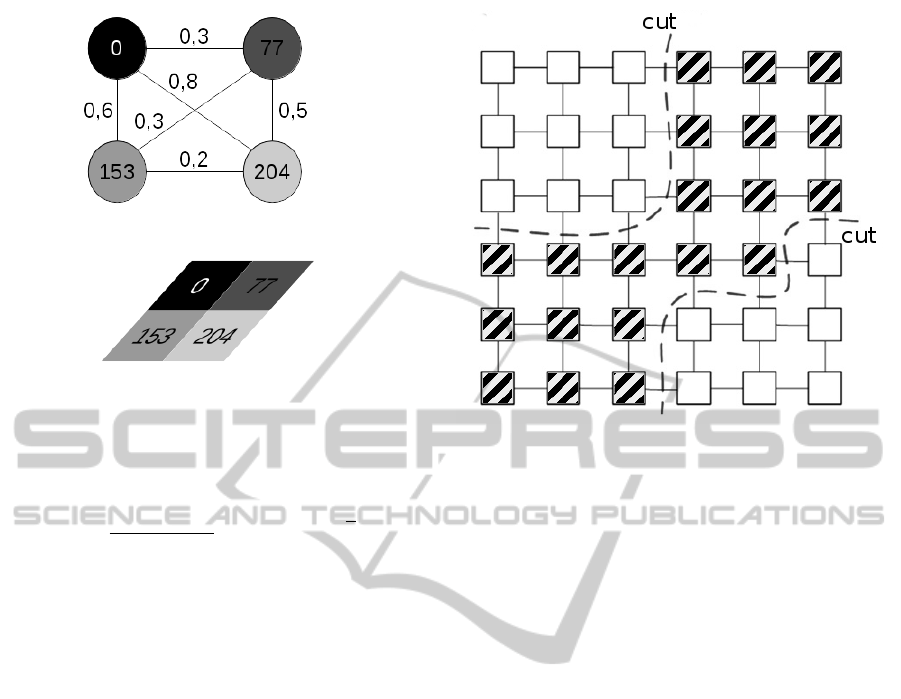 between pixels. Weights of edges is computed by a