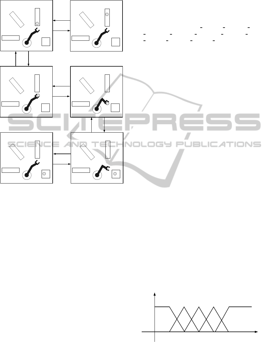 transfer of a piece A by the robotic agent, the pro-