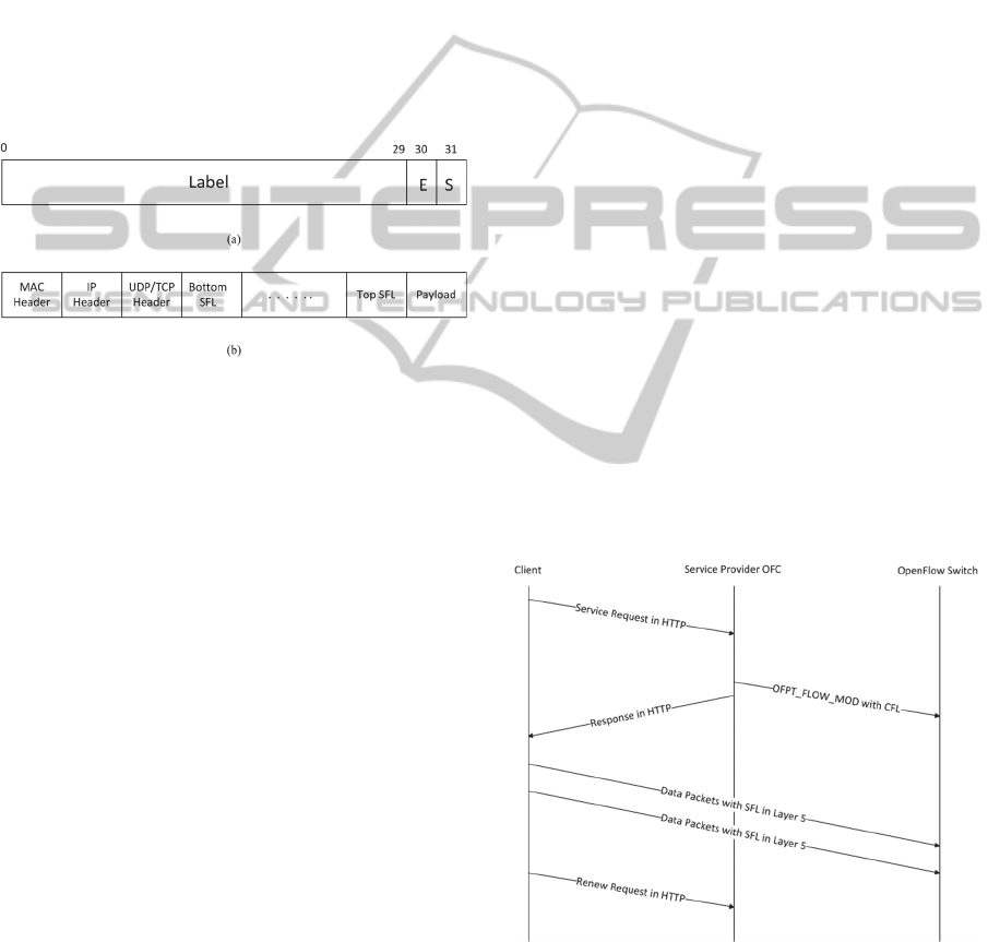Forwarding Label (SFL) mechanism at Layer 5 that