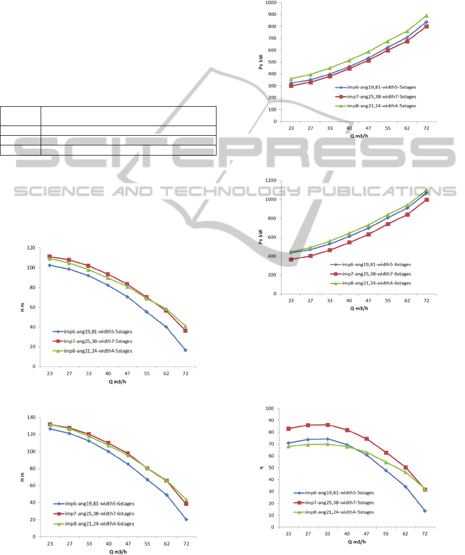 multistage pump, the concept consisting of varying three parameters at a time was used. Thus, the combined