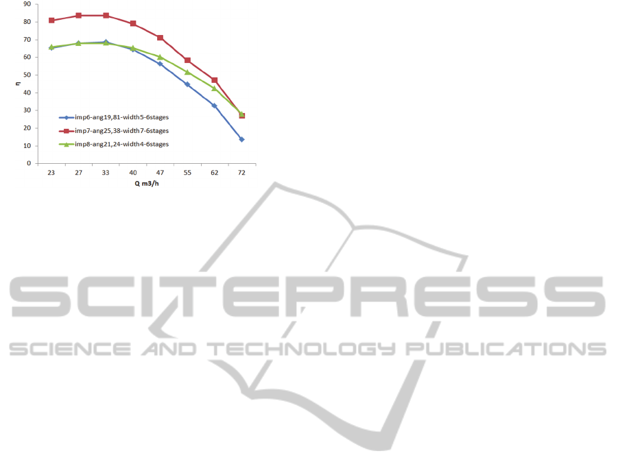 other things, that the highest pump efficiency was reached for the outlet impeller blade angle of 25.38°, the