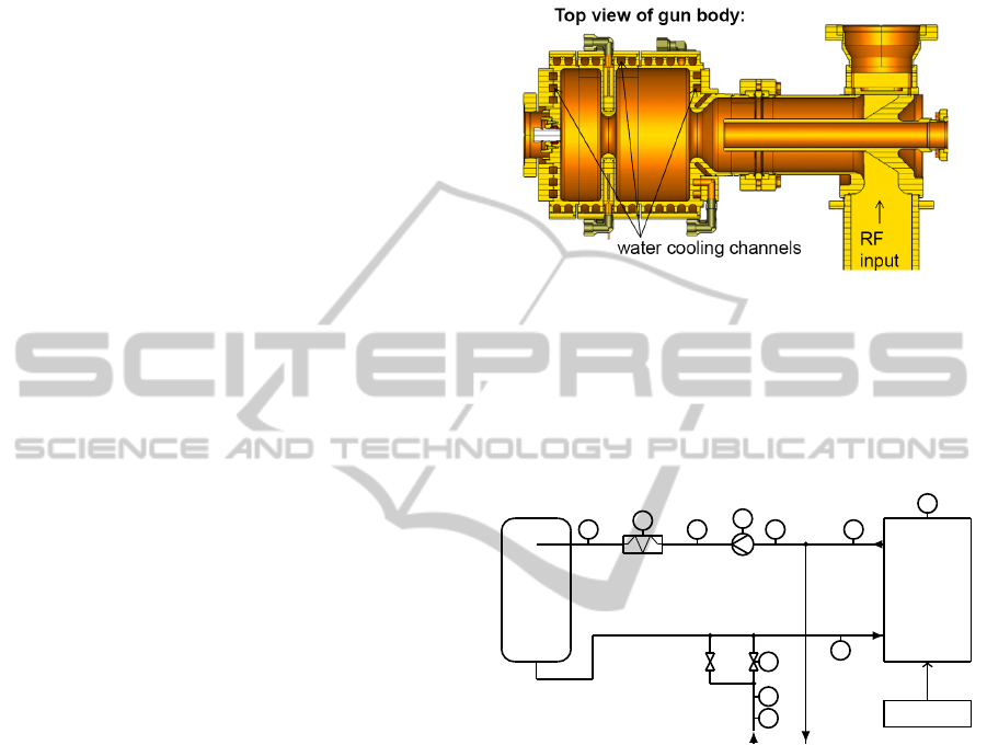 The RF GUN and the cooling circuit are modeled by