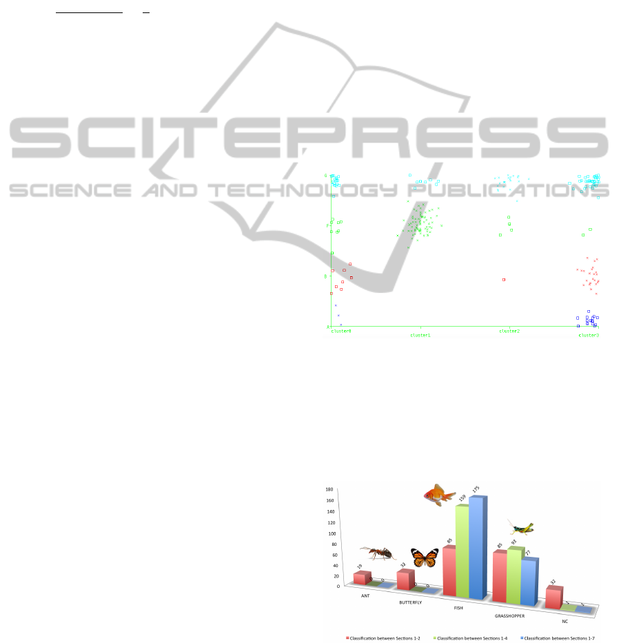 Table 1: Results of the clustering for K = 4 for the first two sections of the exhibition.