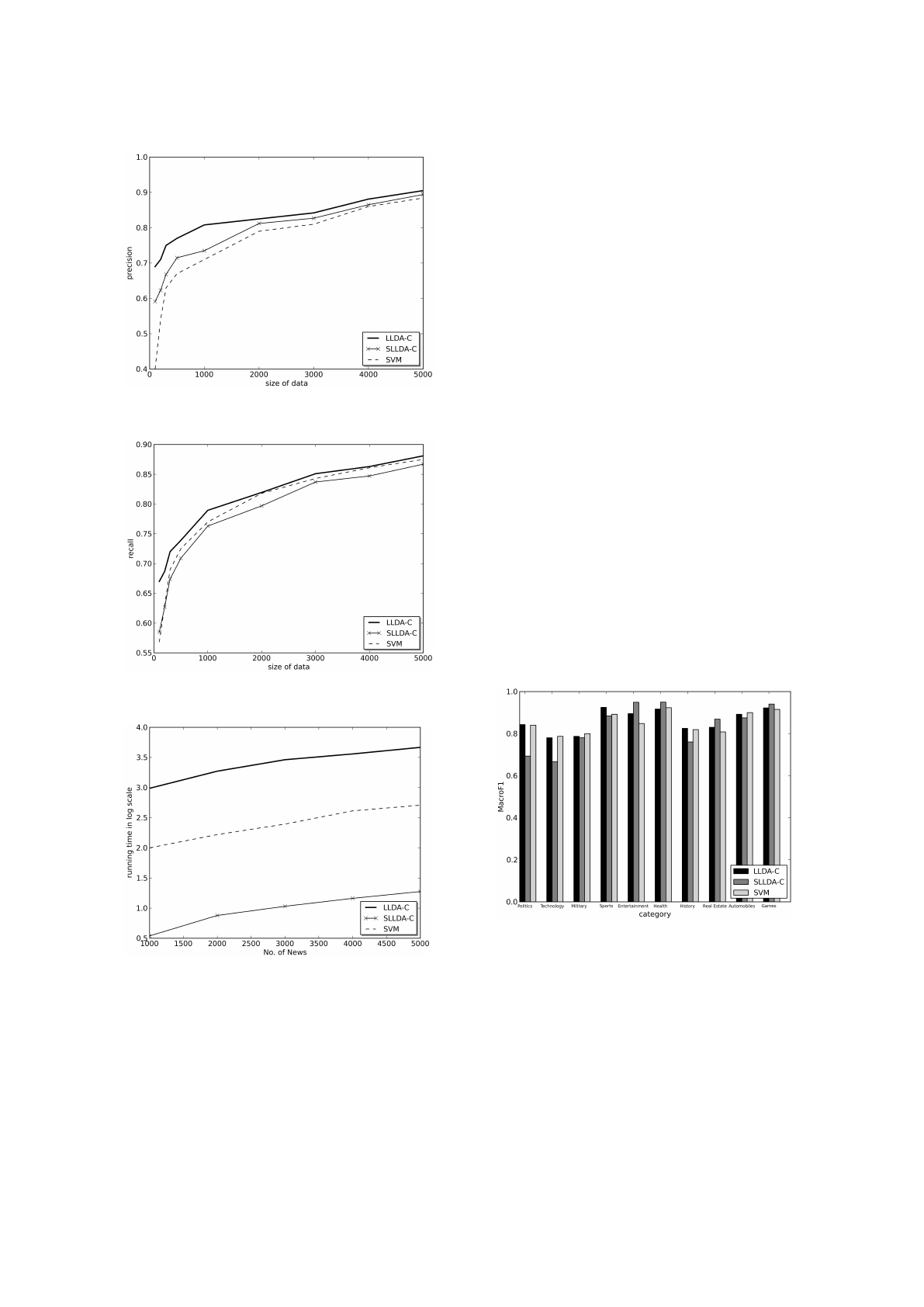 than SVM. In terms of recalls, LLDA-C is better than