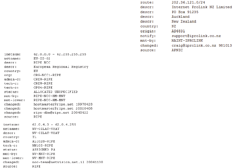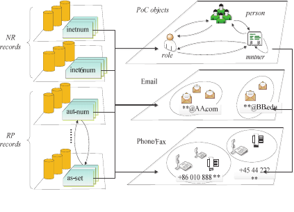 inetnum ,mntner…, mail, phone/fax number} denote