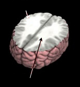 deficits in the size of the corpus callosum (the white