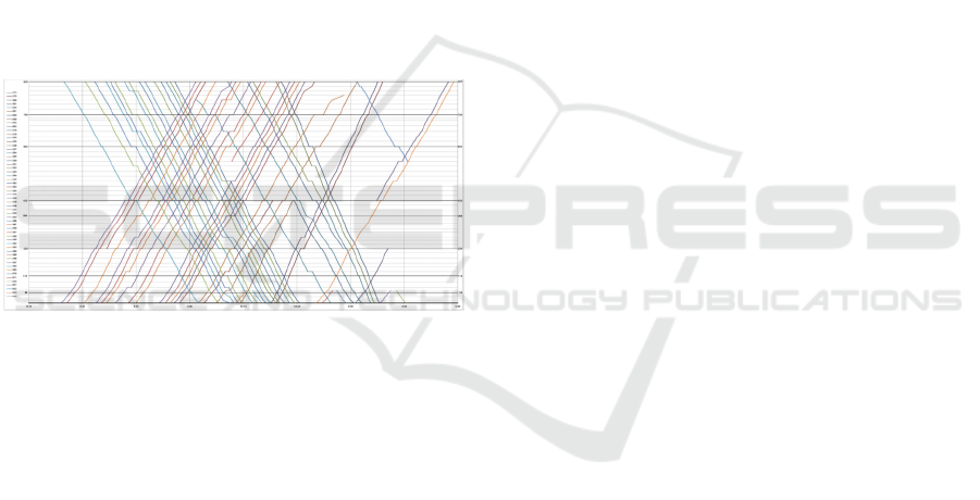 Fig.3. In this case, the trains with low priorities are