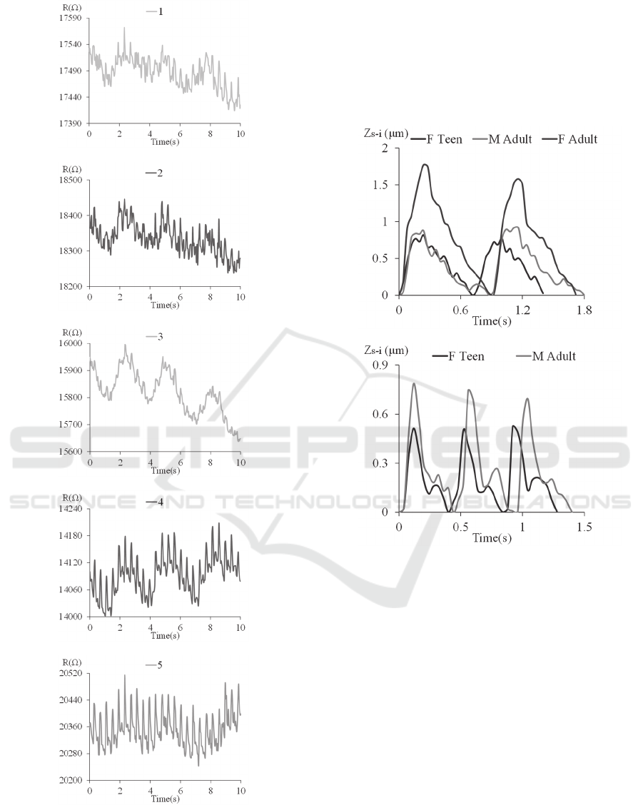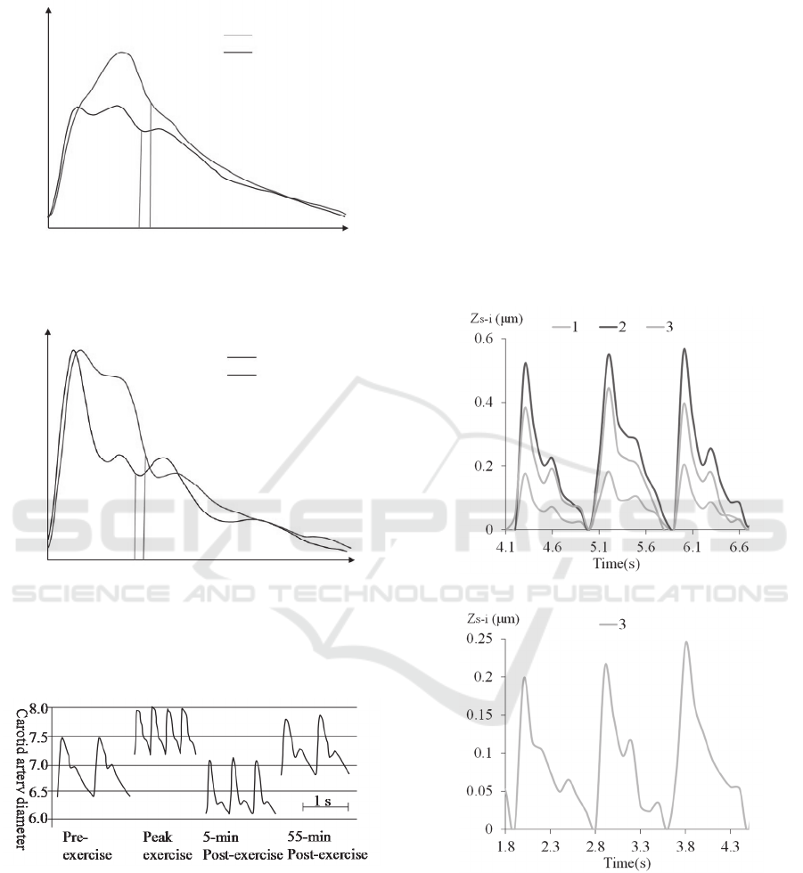 of carotid and radial arteries of the three subjects at