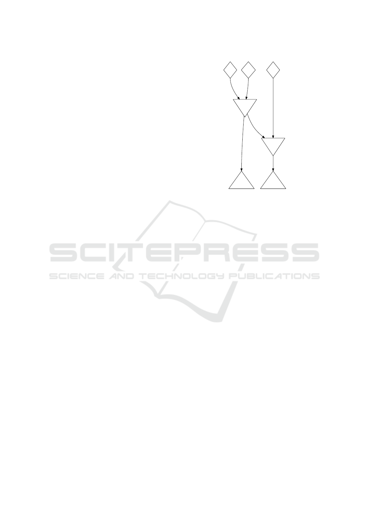 represented as inverted triangle shaped nodes.