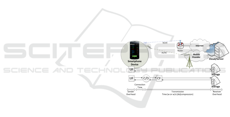smartphone to a remote server over the Internet. For