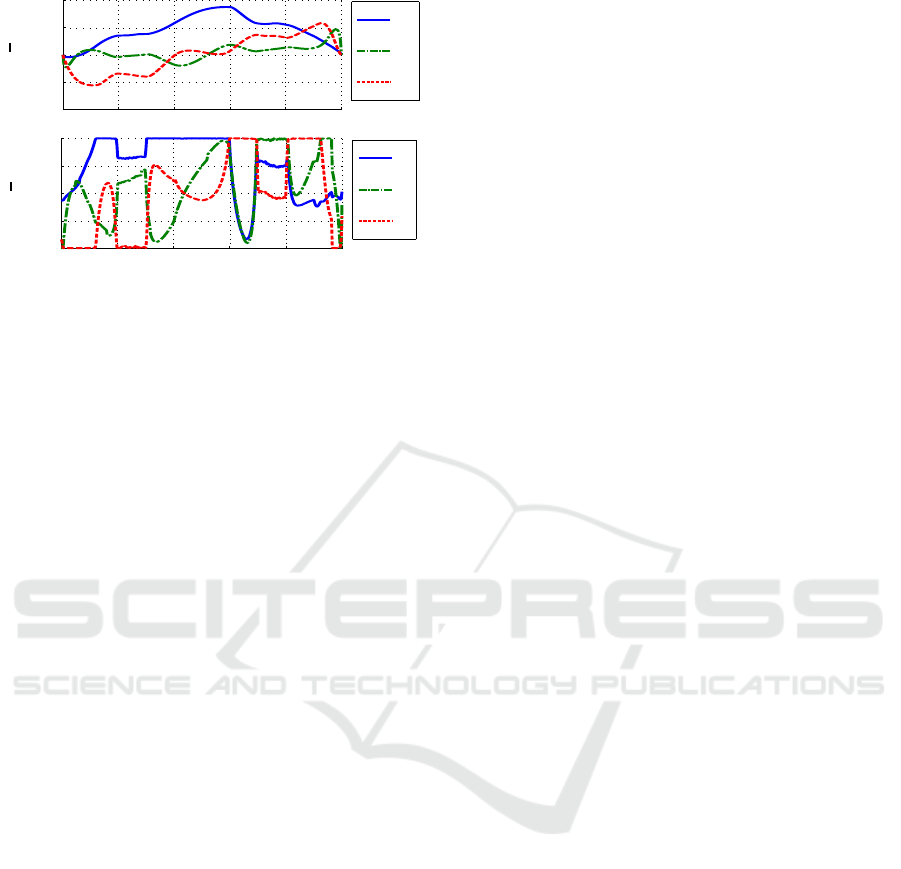 Figure 11: Top: Normalized joint velocities. Bottom: Nor-