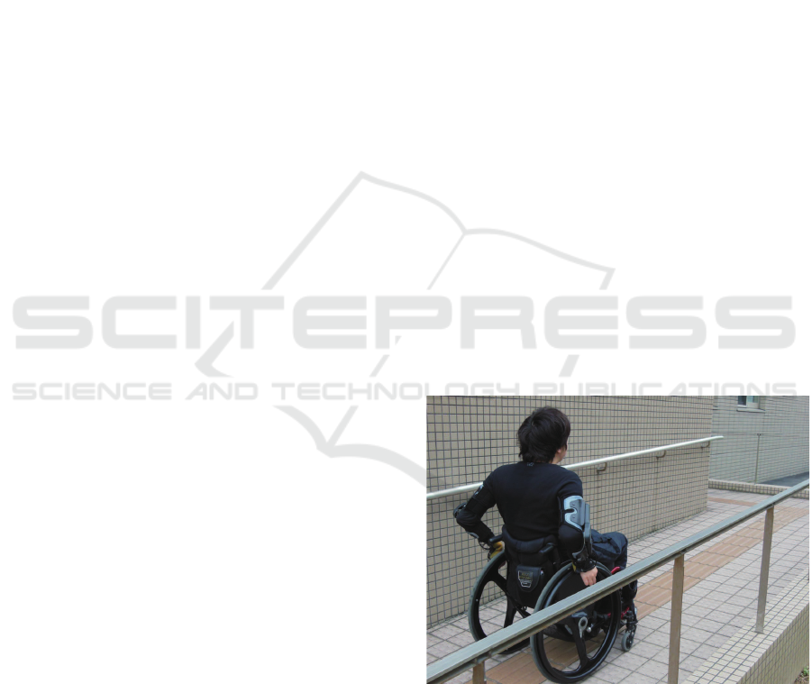 wheelchair by using his hand. Therefore, it is indi-