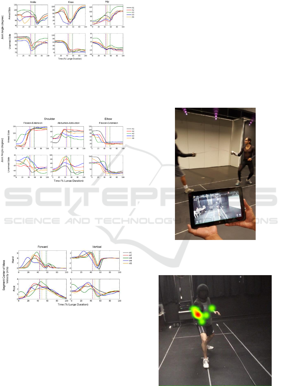 Data from the best-executed lunge attack of each