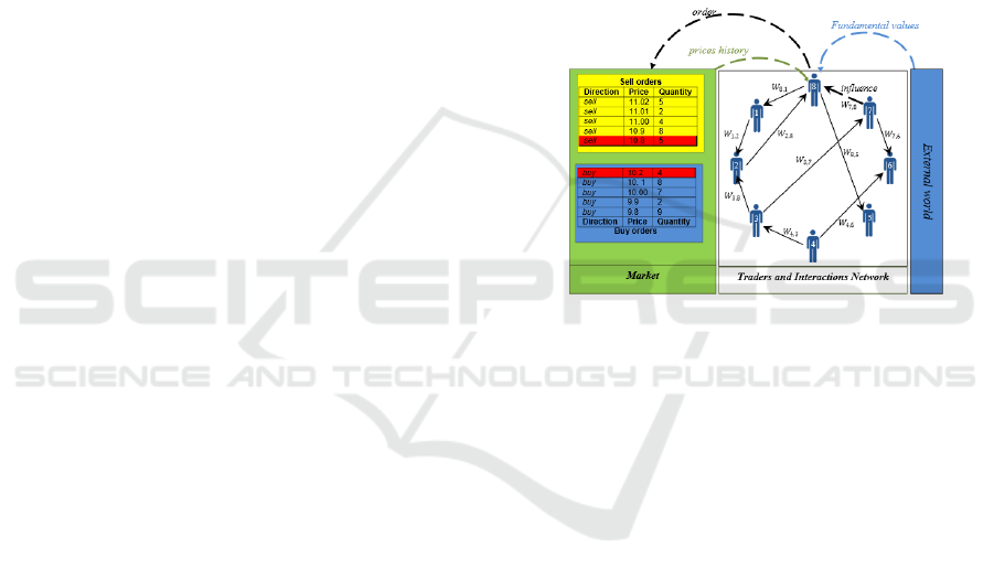 and a social network of interactions. The market is