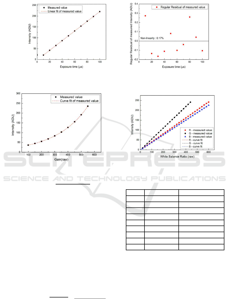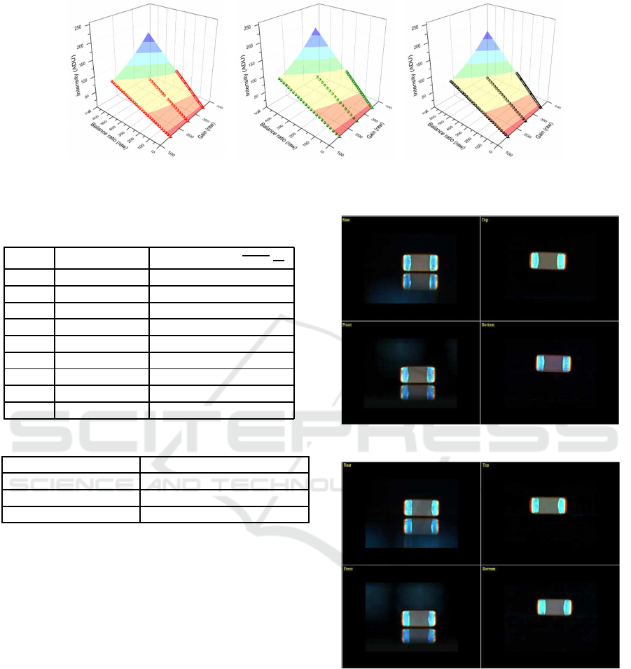 gain and white balance ratios of the inspection cam-