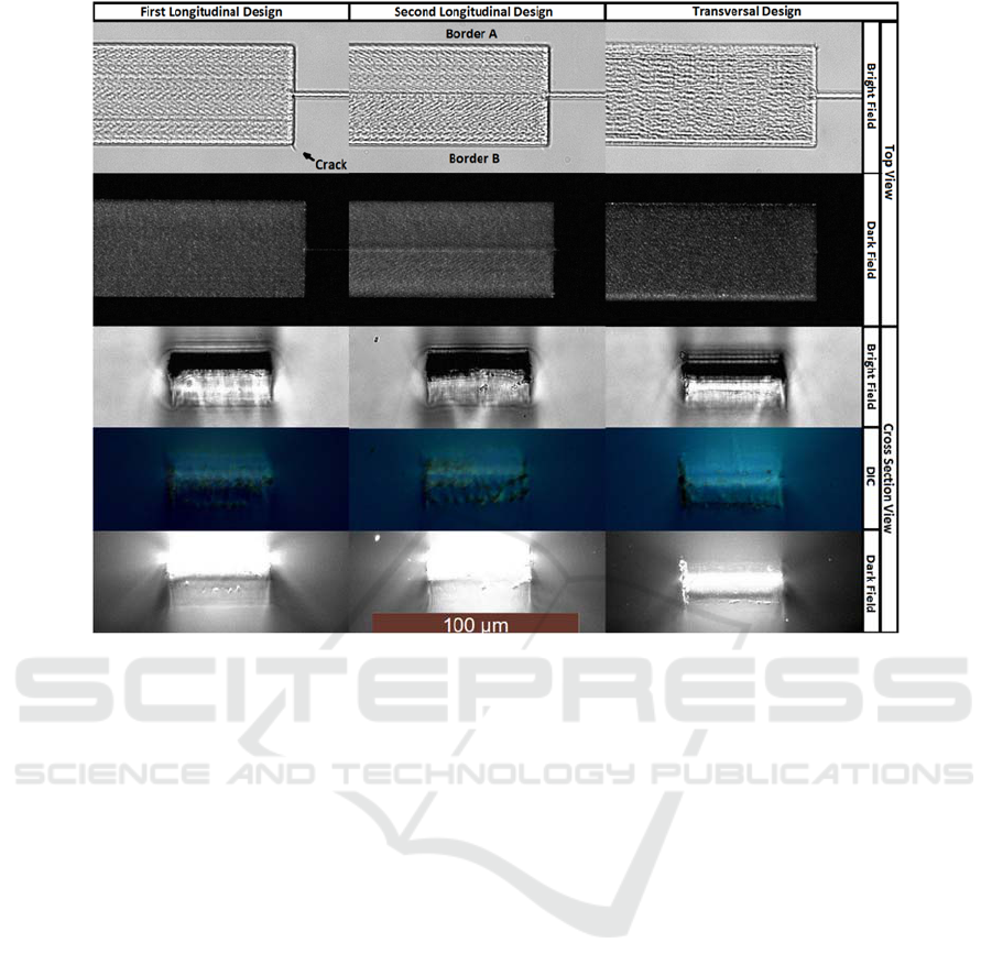 devices were fabricated using the three designs