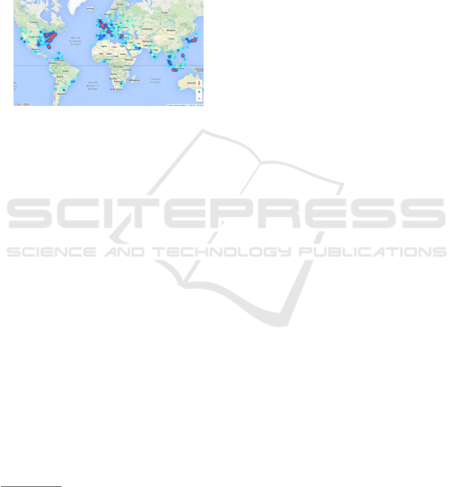 to countries and count the appearance of each coun-