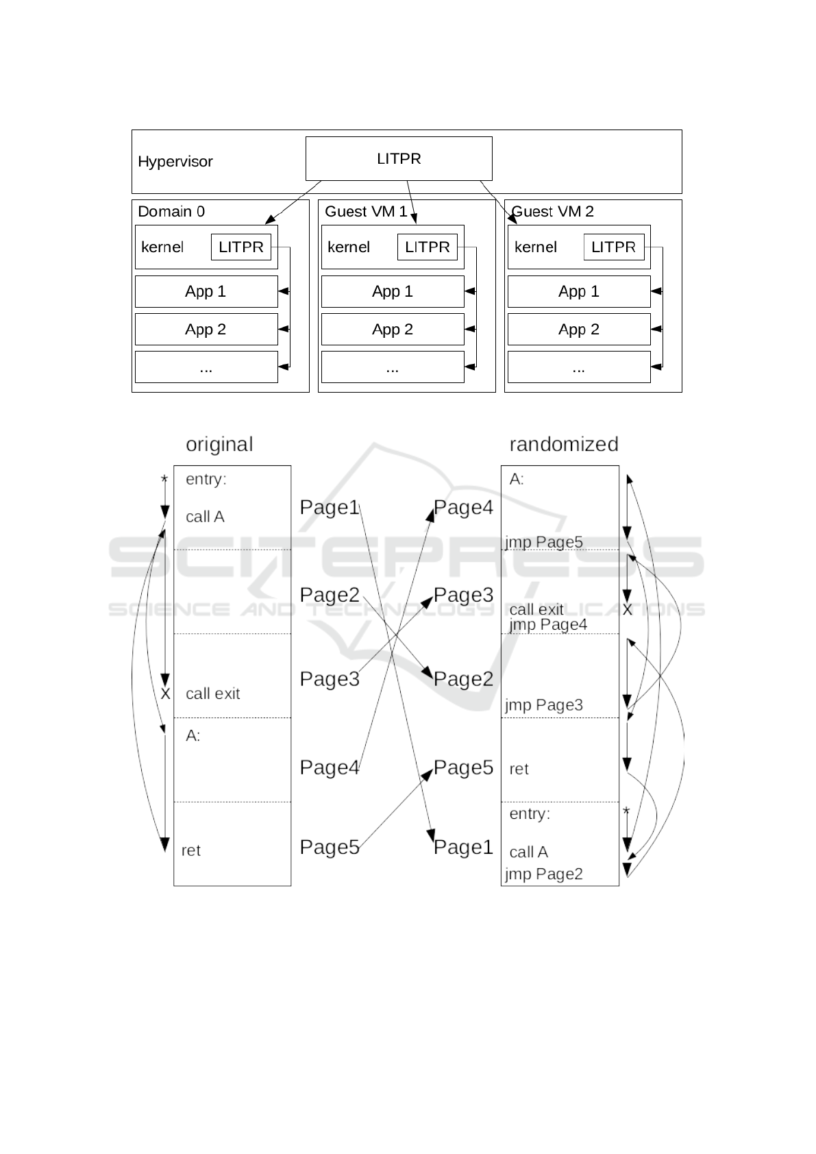 actions against it. LITPR periodically randomizes the in-memory locations of application and kernel code, at