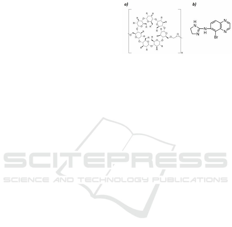 studied drug (brimonidine) encapsulated in a poly β-