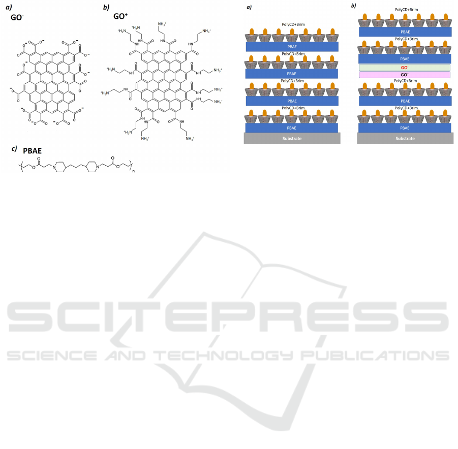(β-amino ester) - and charged graphene oxyde layers.