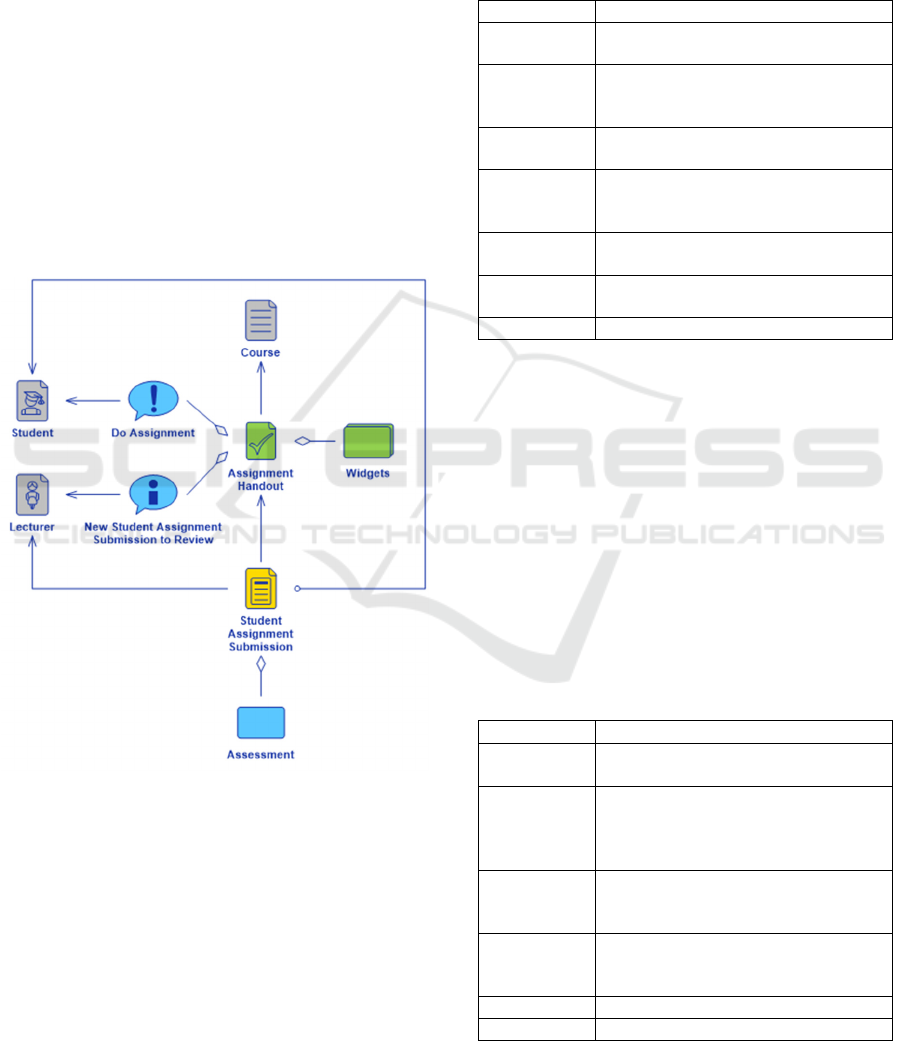 assignments, etc.) and associations between artifacts,