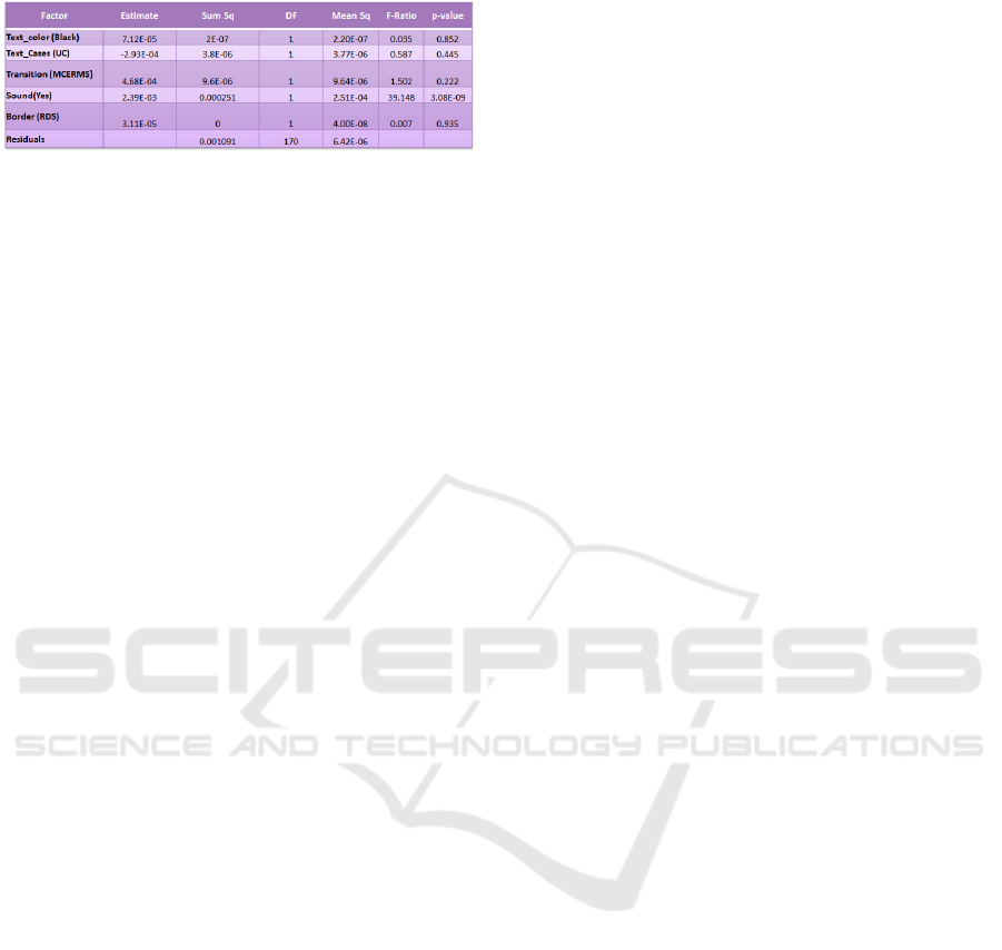 Factors being: Sound (yes or no), text color (blue