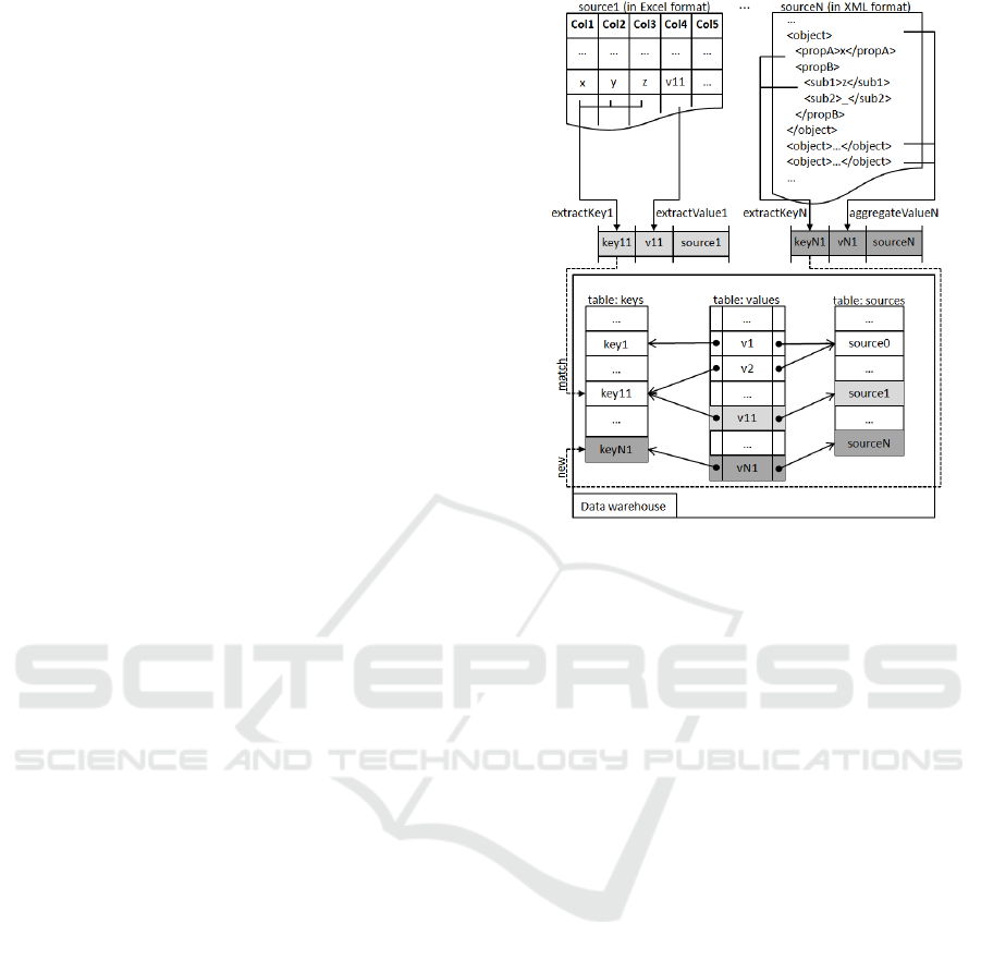 storage of values in the data warehouse as well as the