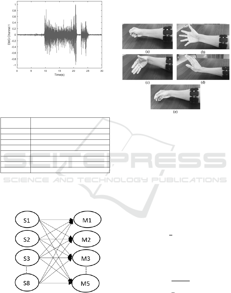 as MAV, RMS, NZC, VAR, STD, PSD, and EOF's. Signals are acquired through 8 channels from "Myo