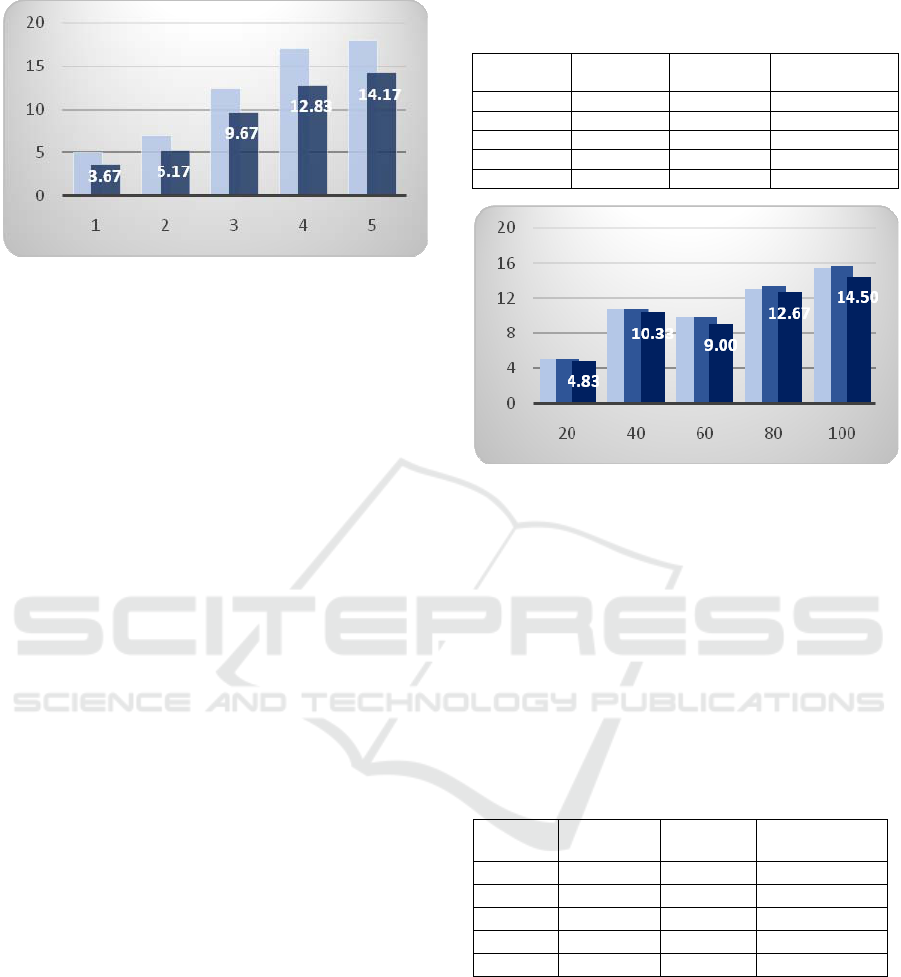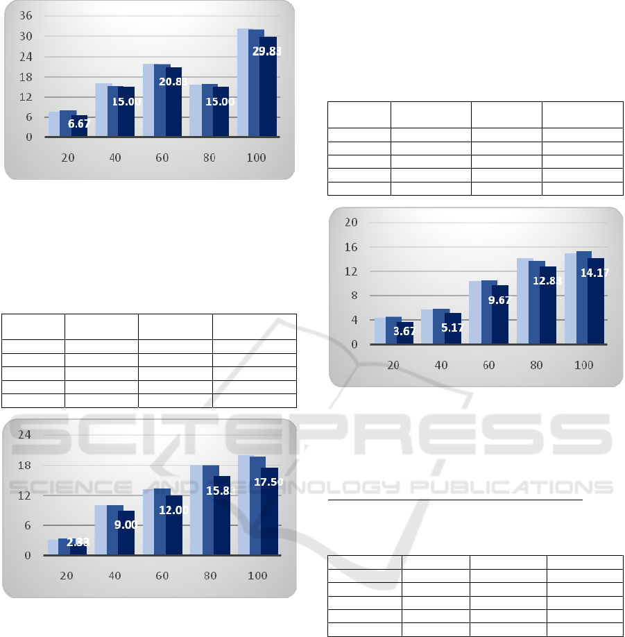 shown in table 7 for input size of 40. If the order of