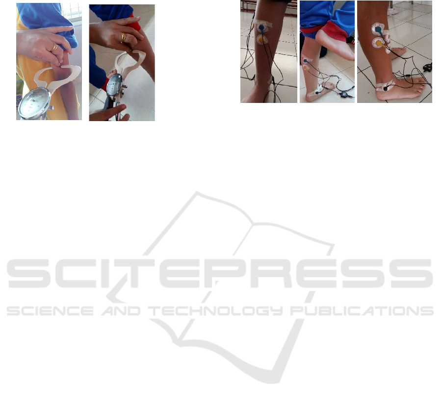 recorded from tibialis anterior, gastrocnemius medialis and peroneus longus muscles while participants were