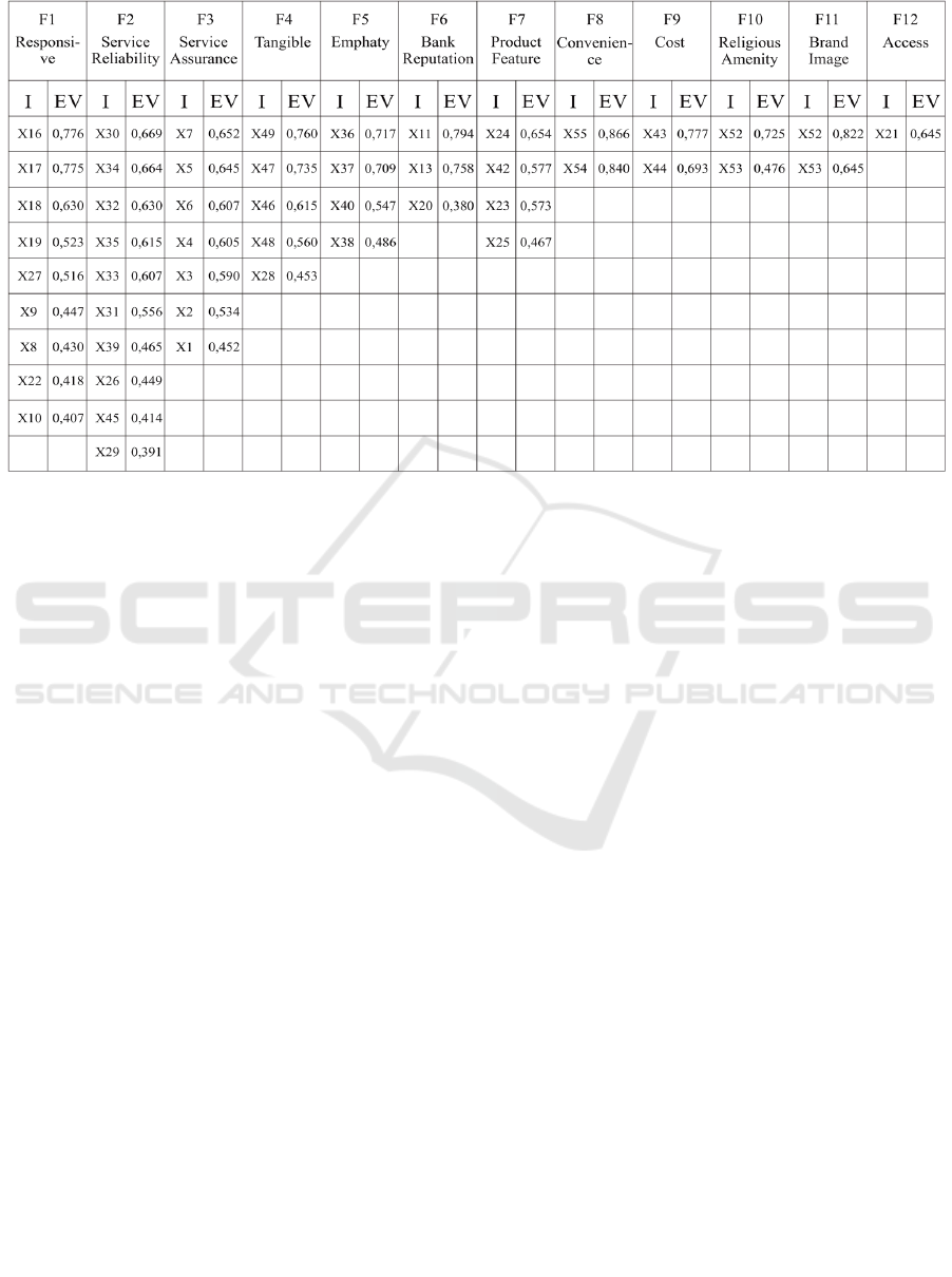 calculated Eigen value (loading factor). Based on