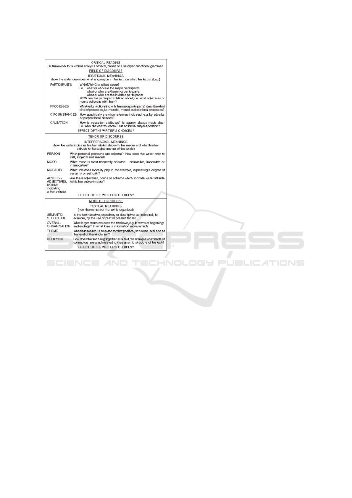 framework has helped them to analyse a text