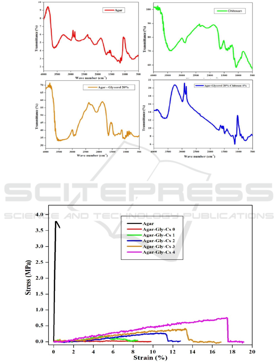 bonding in the film agar-glycerol-chitosan. The more