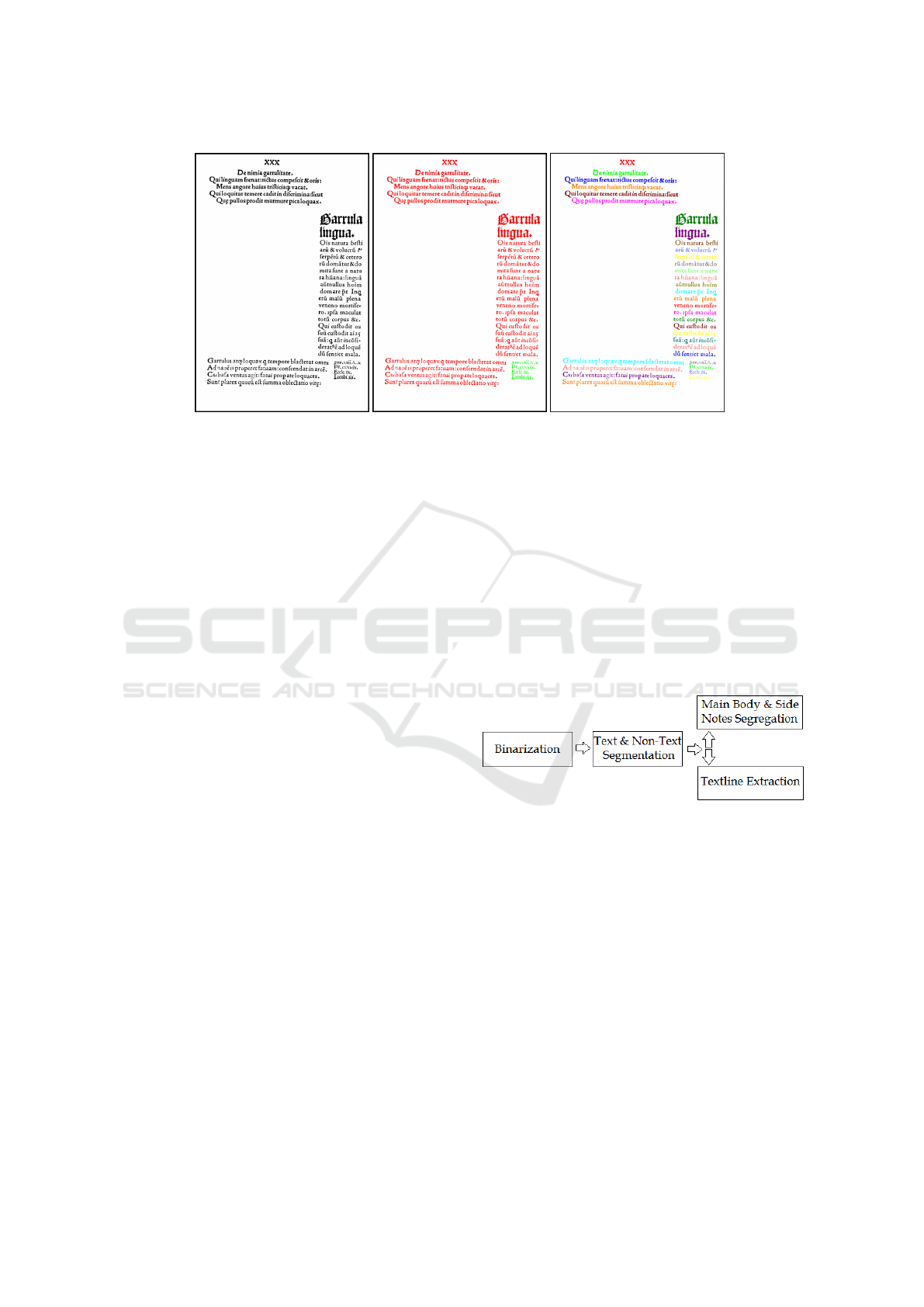tation, main body and side note segregation and text-