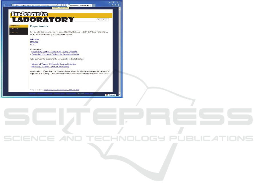 The web page of the developed remote laboratory