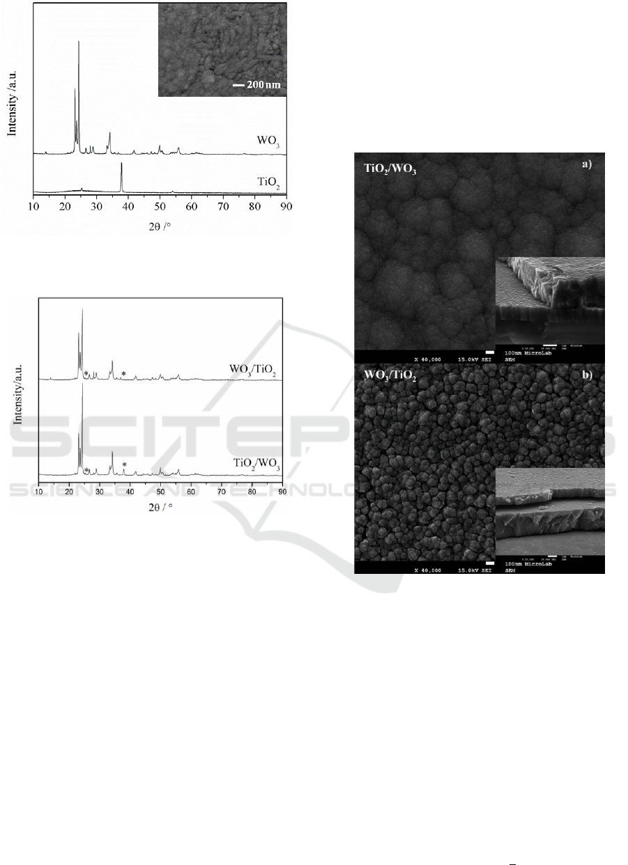 bilayered films, when the upper layer is WO