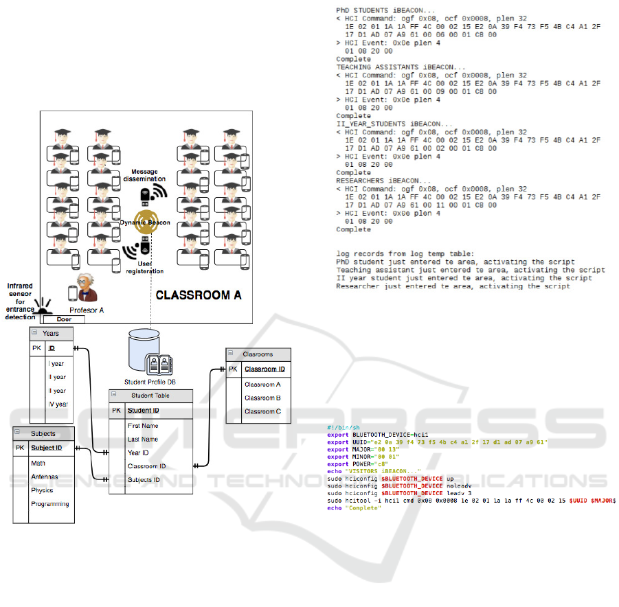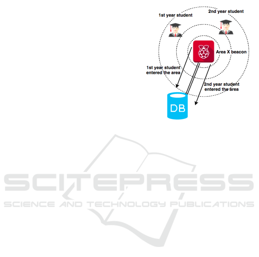 students are in beacon proximity, without any appli-