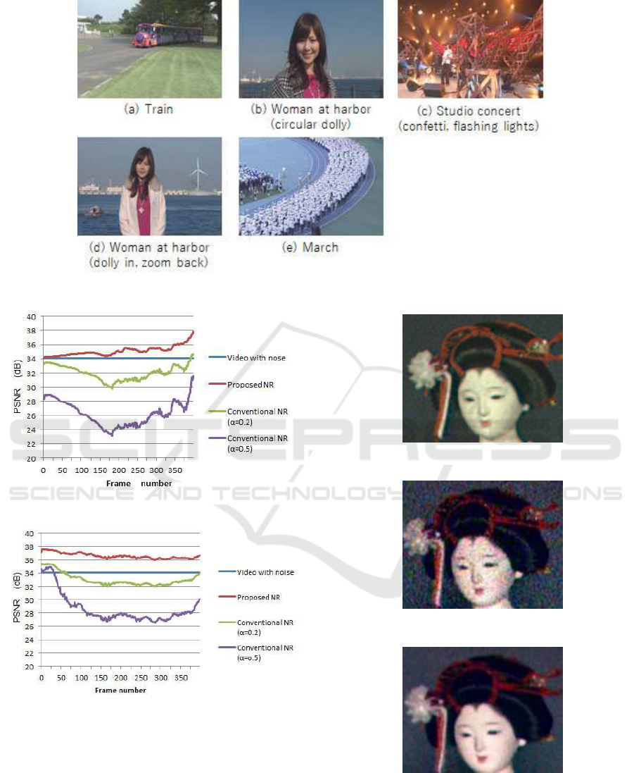 the noise in the videos, its PSNRs are lower than those