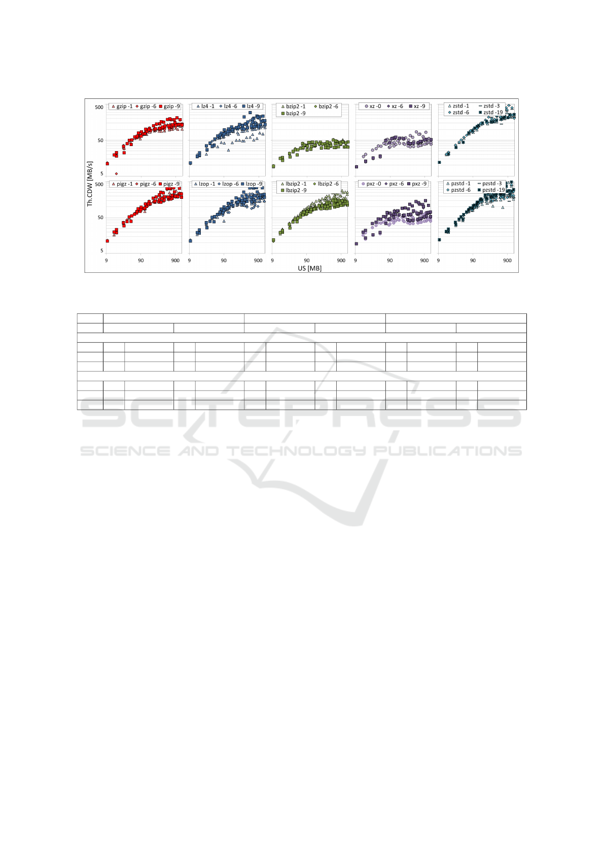 pression ratio and throughput, such as pzstd/zstd and