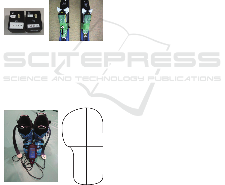 sensors. The inertial sensors were used to log the motion of skis, and the plantar-pressure sensors were used