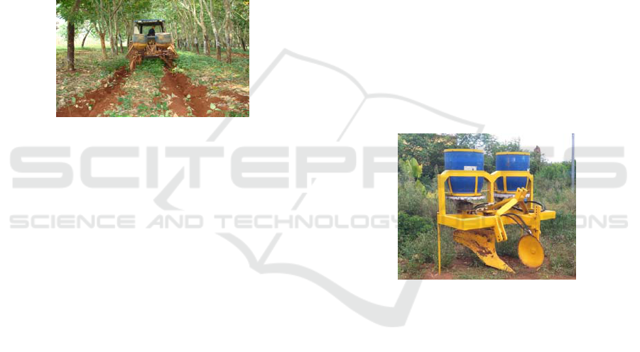 b.The rubber plantation ditching and fertilization