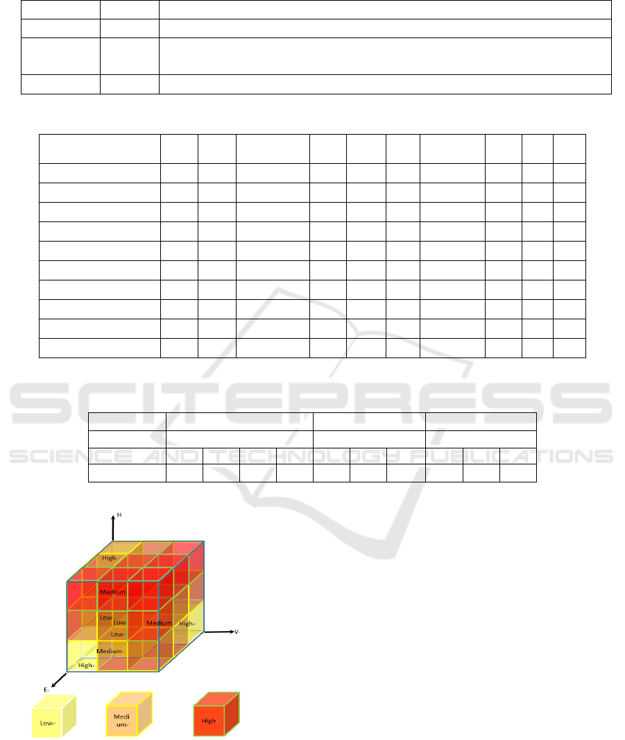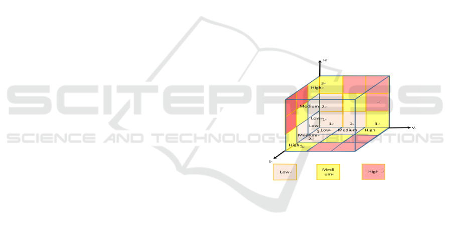 H, E, and V were classified as three levels of high,