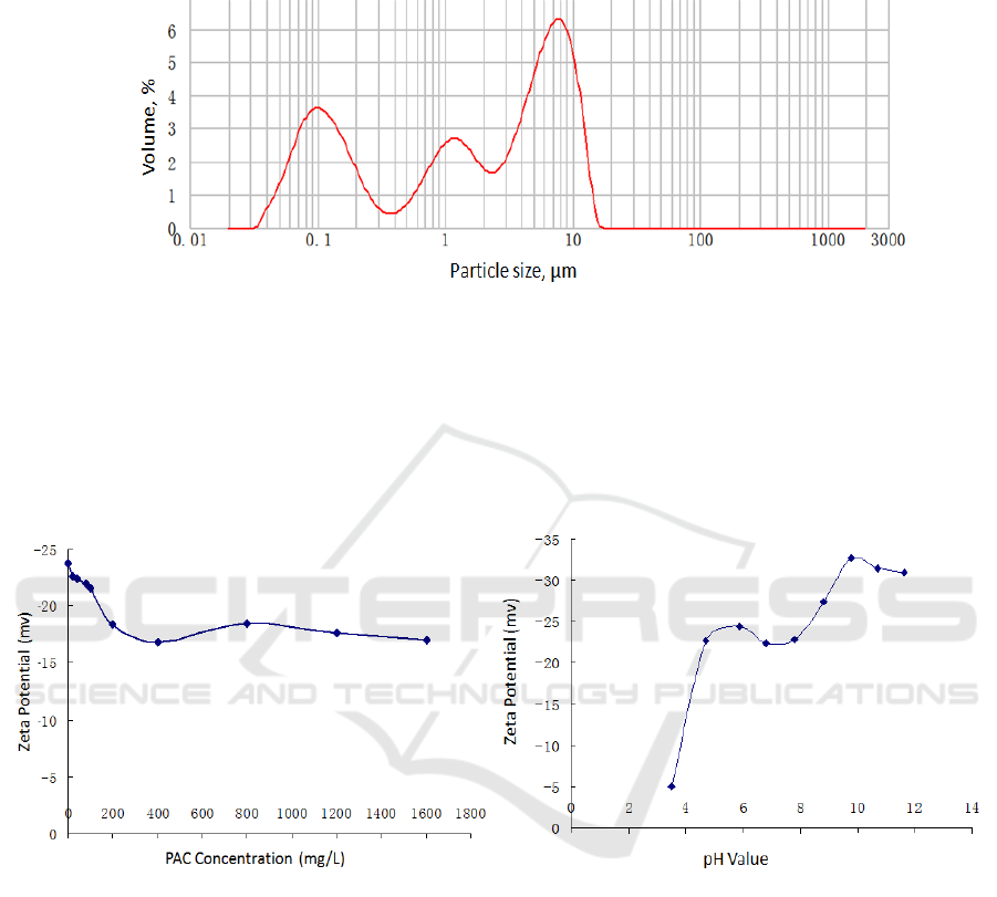 conditions. The zeta potential showed the sewage was much negatively charged. At pH value