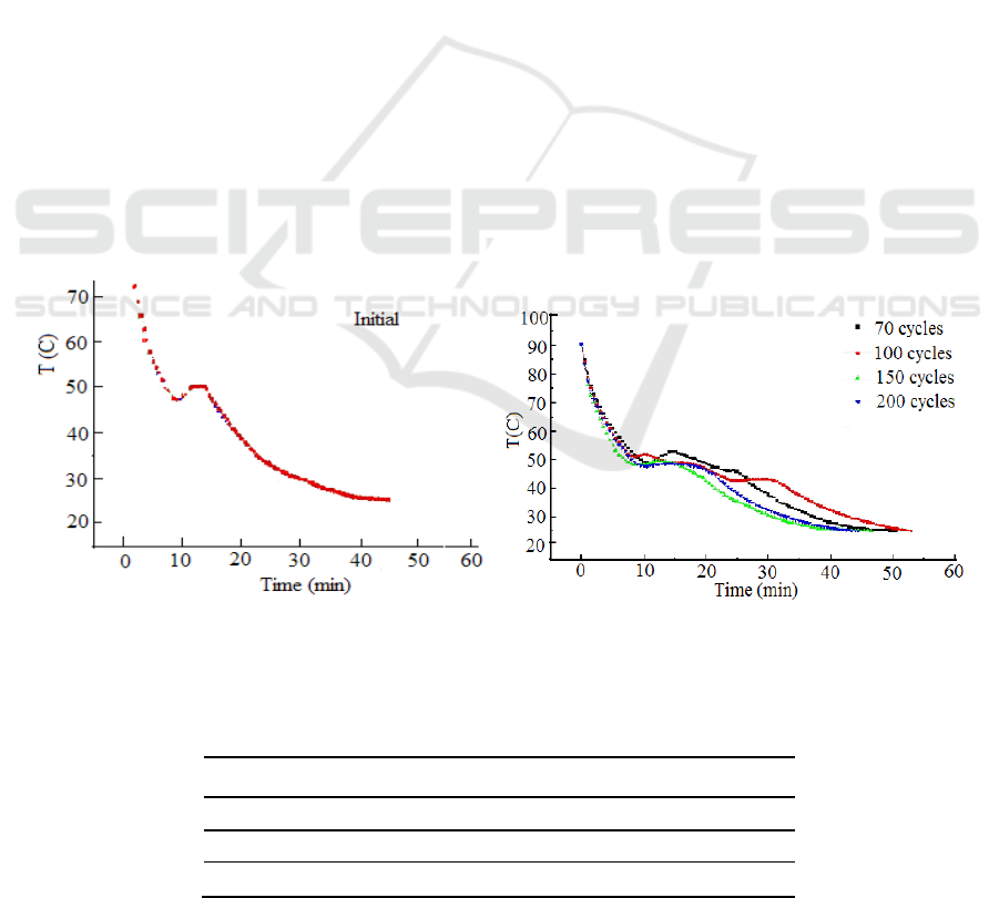 several cycles of cooling and heating, which is a good hydrated salt phase change heat storage