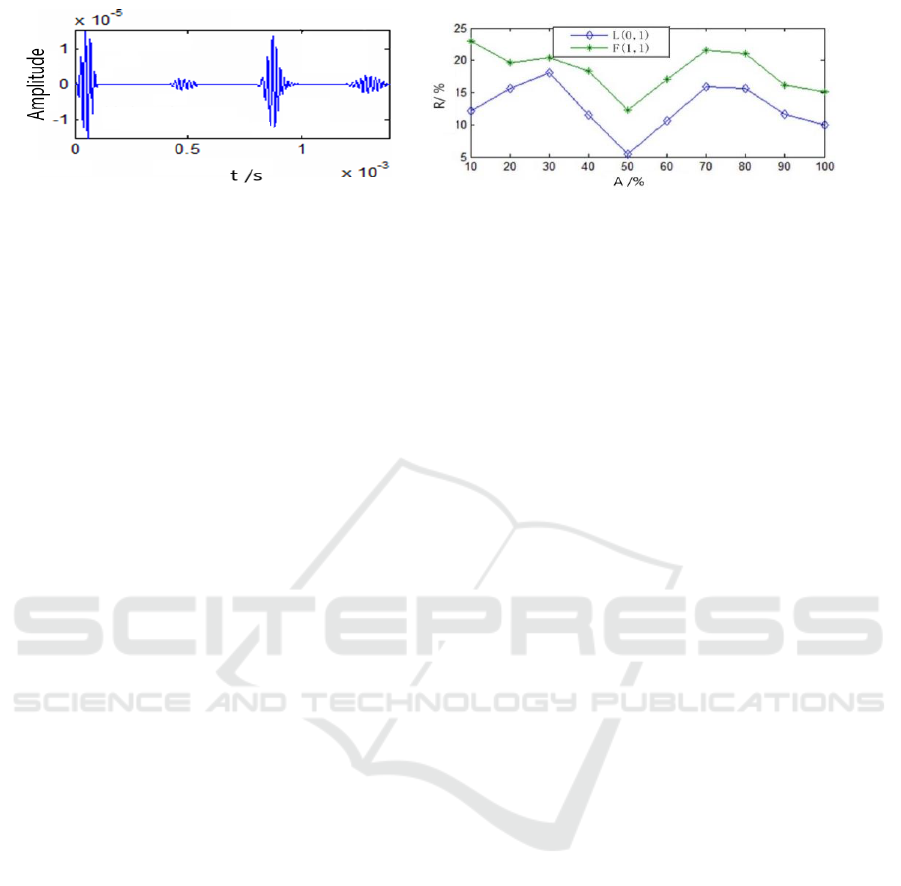 change trend of the defect reflection and wave type conversion of L (0, 1) mode and F (1, 1)