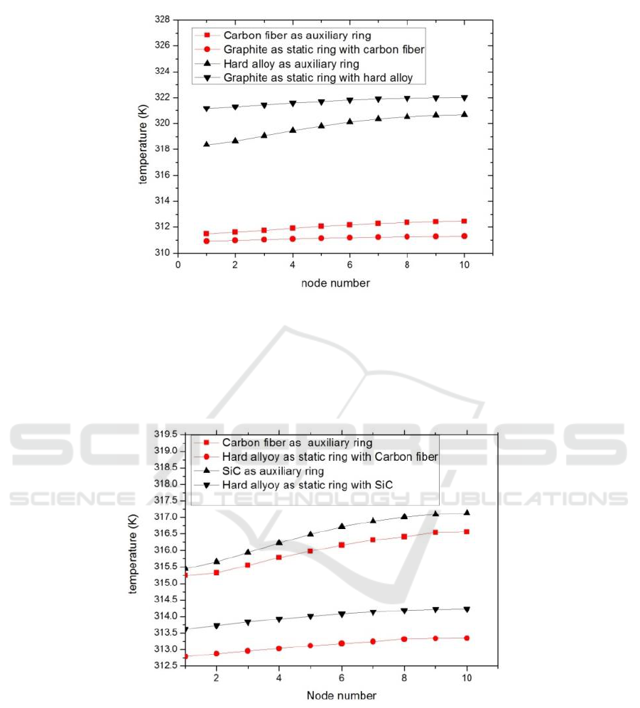 dynamic rings of the friction face. First, the temperature field under different materials is studied;