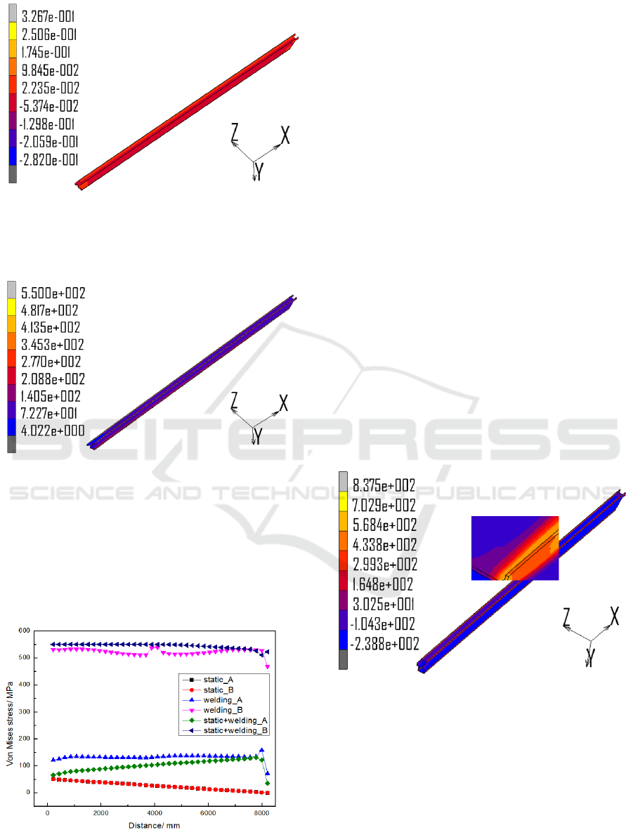 high and the maximum Mises stress in weld zone is