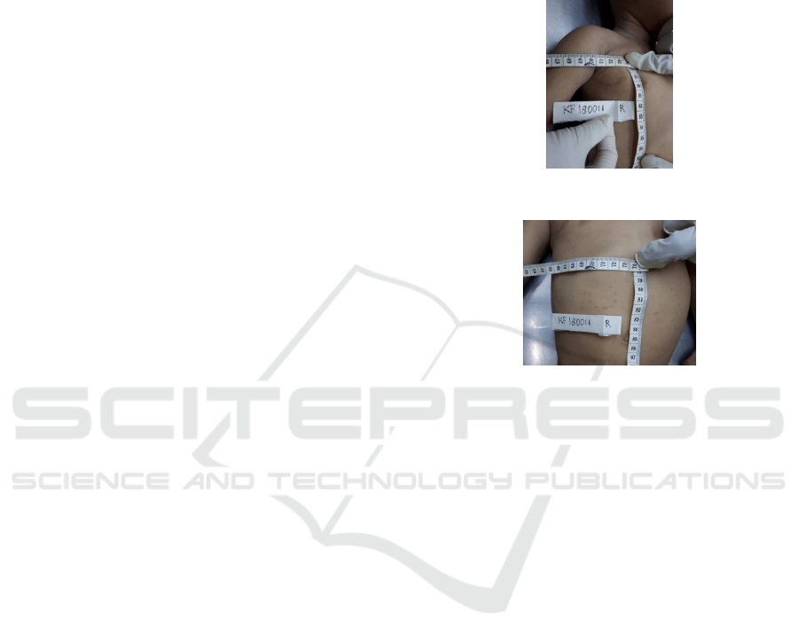 angles to that of the lesion with a scale. Bite marks