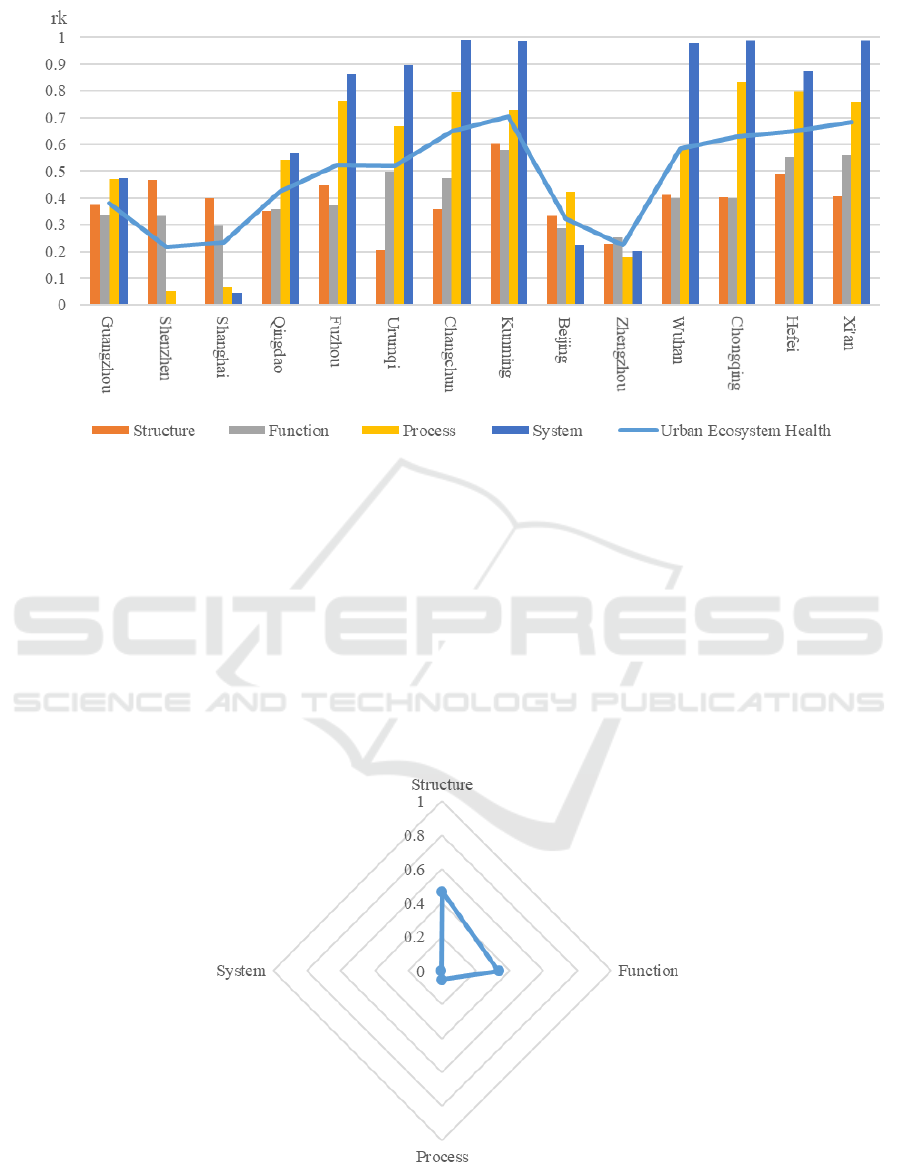 For the process dimension, the health status of Shenzhen’s urban ecosystem is relatively low,