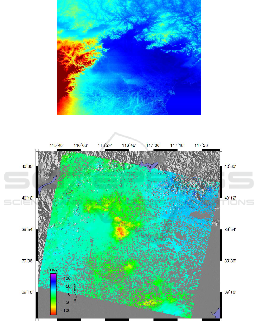 PS- InSAR, which showed that the land surface in Beijing plain area is settling at an accelerating rate,